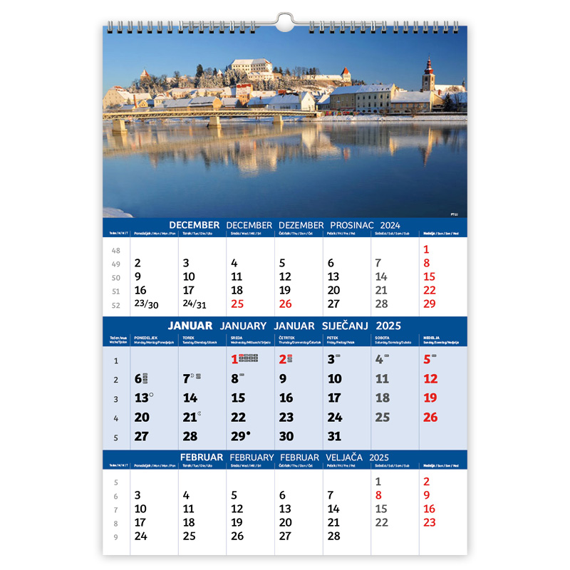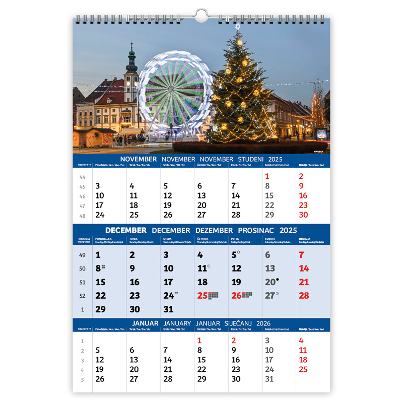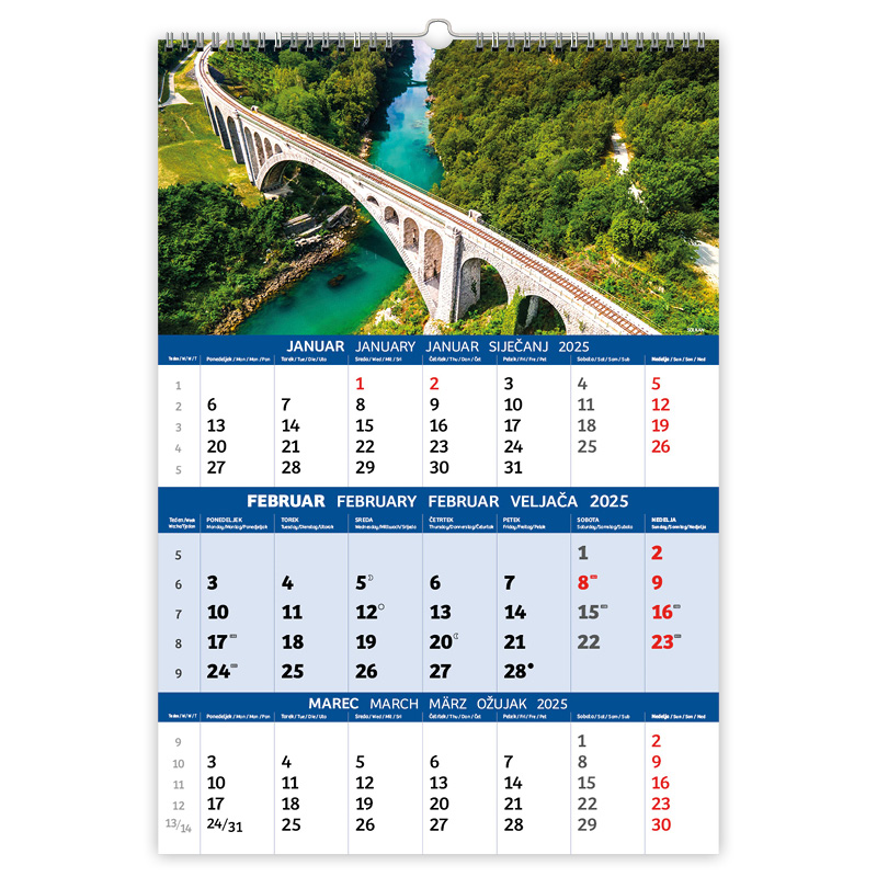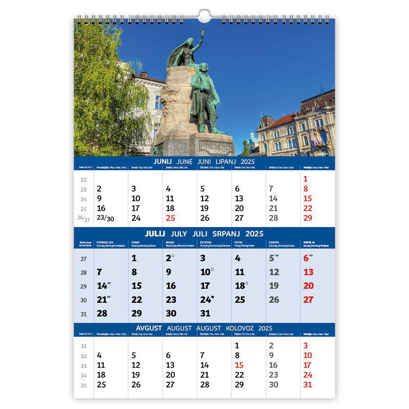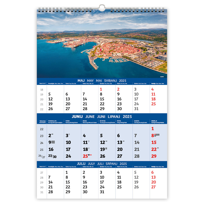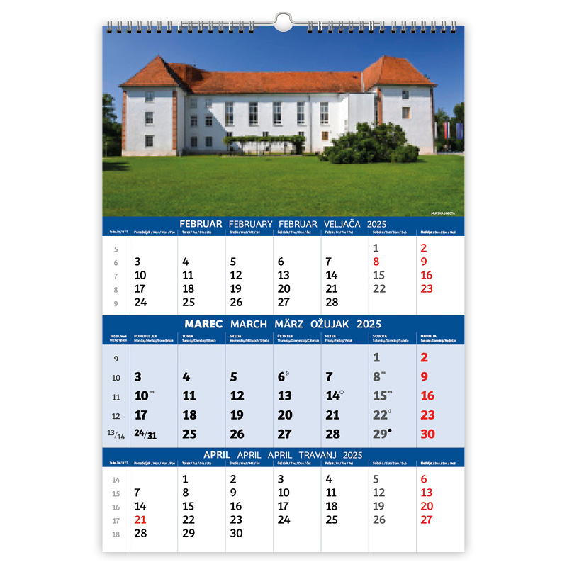 • označeni slov. in tuji prazniki, tedni, imena in lune