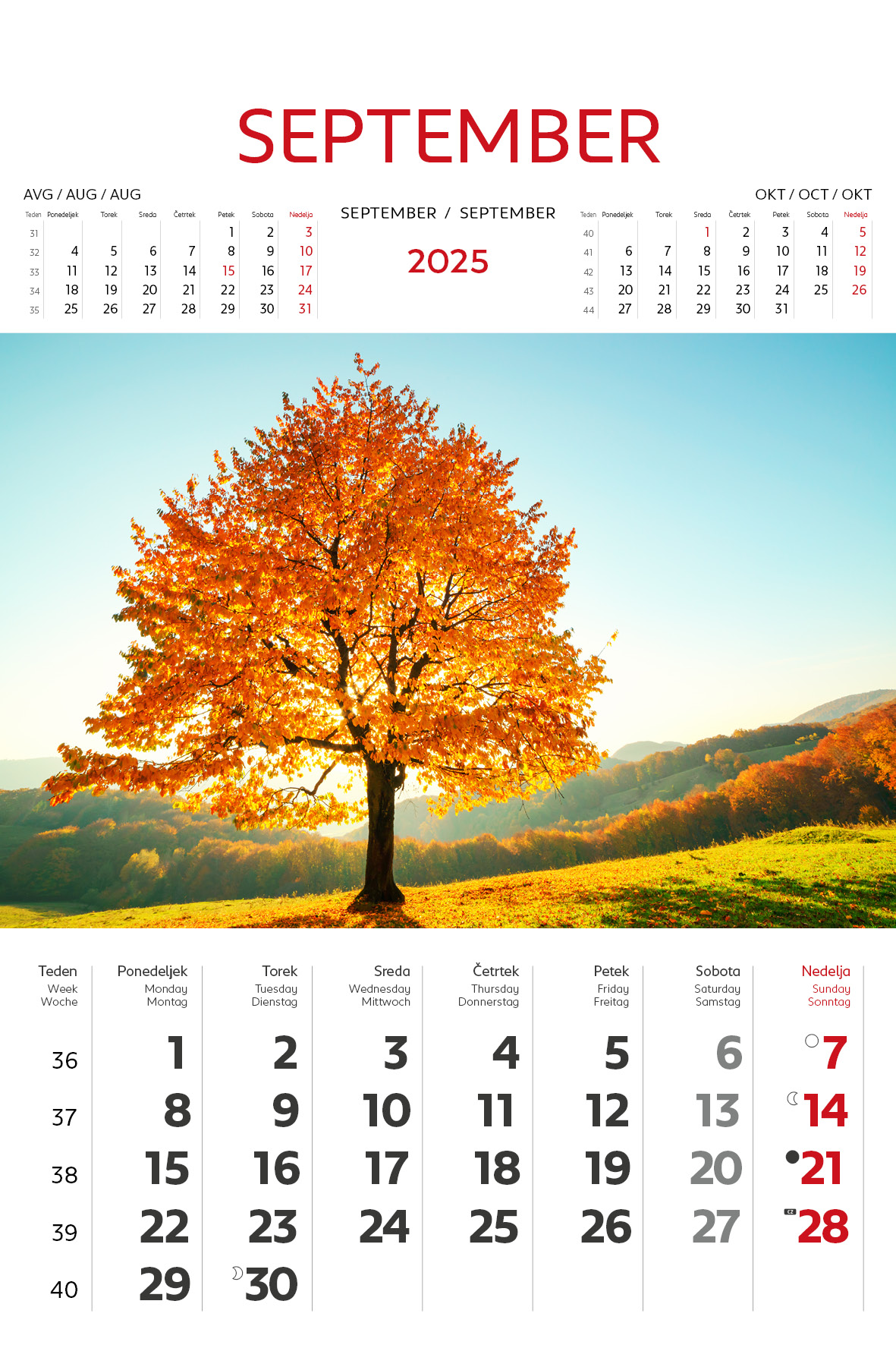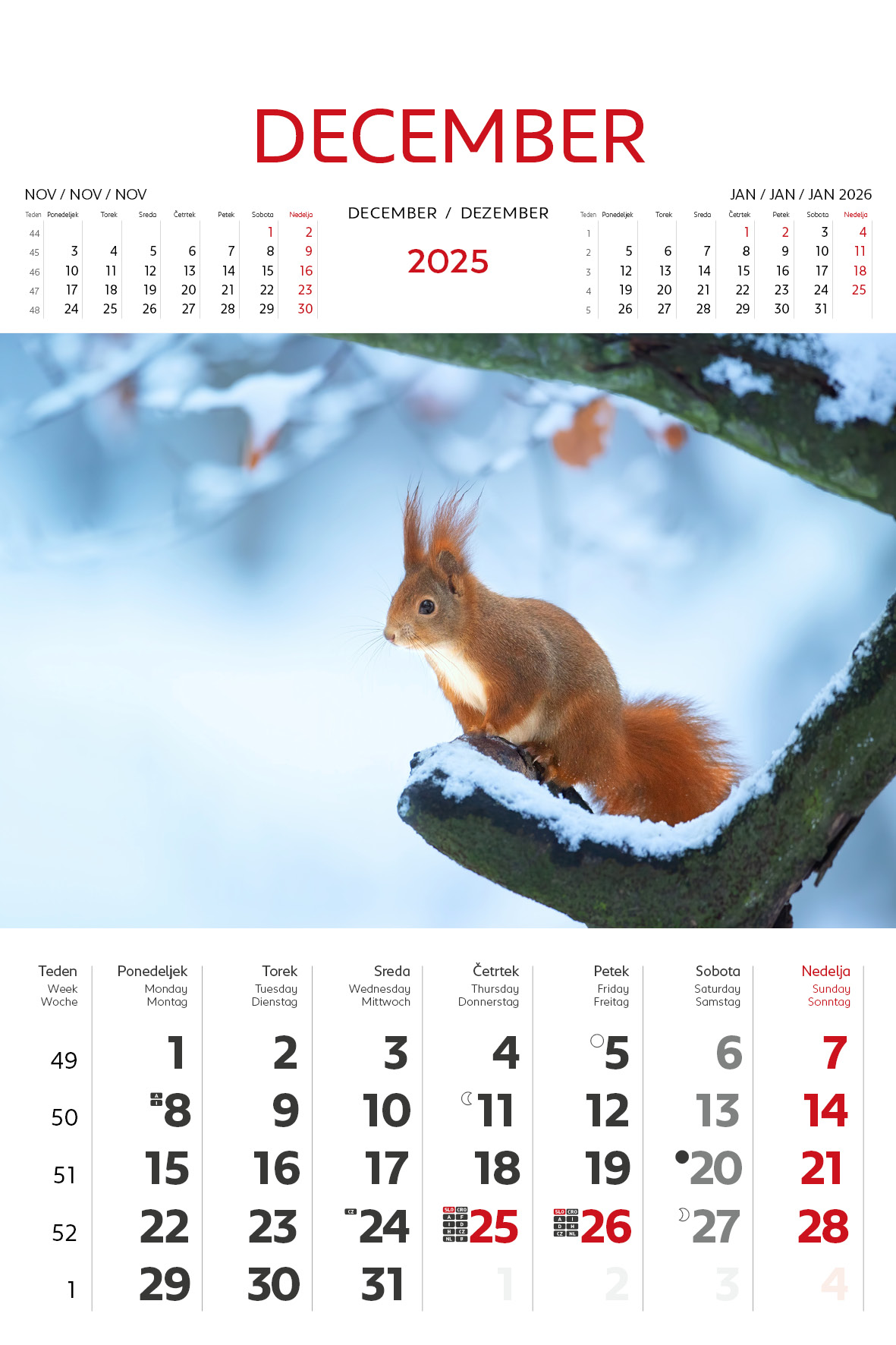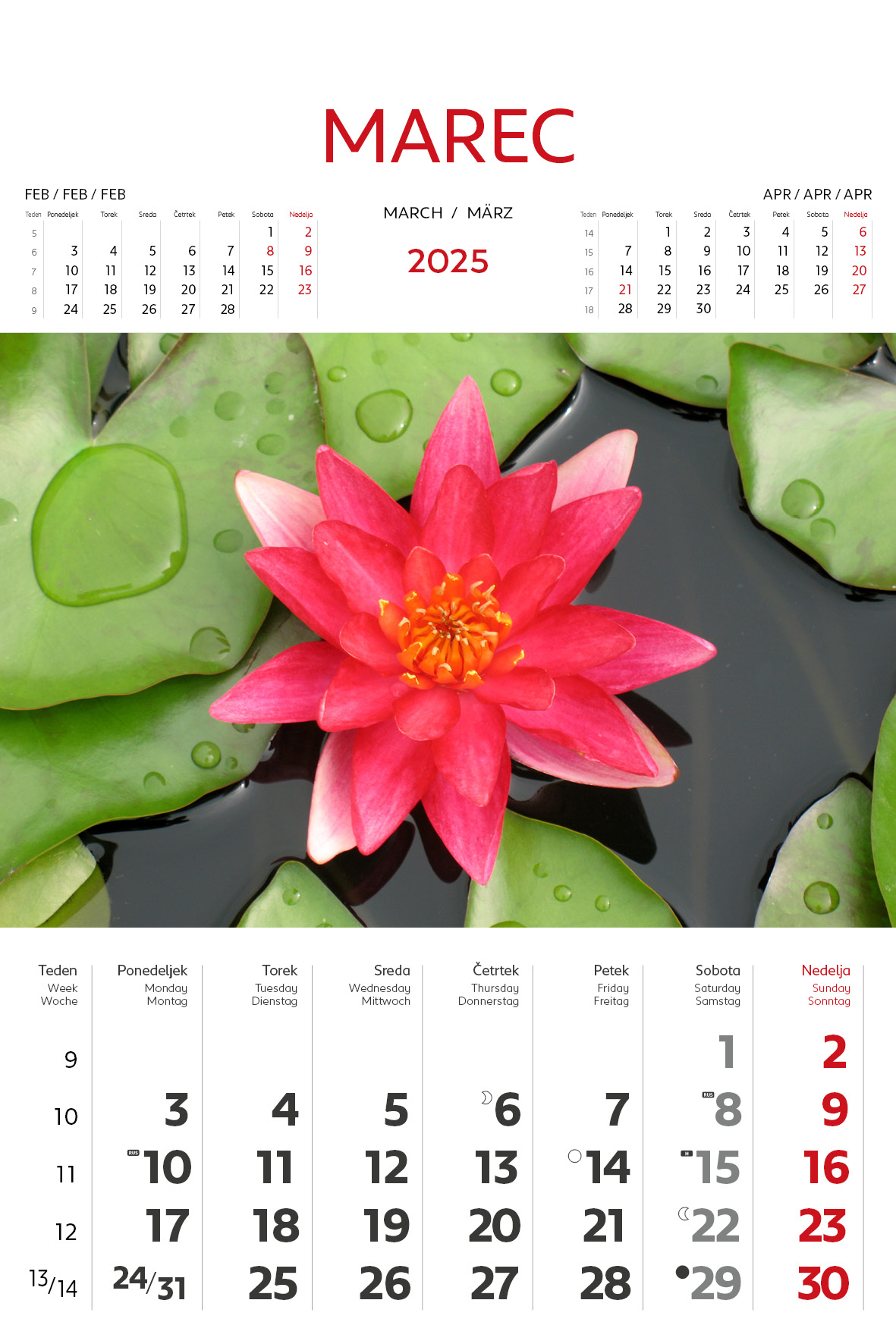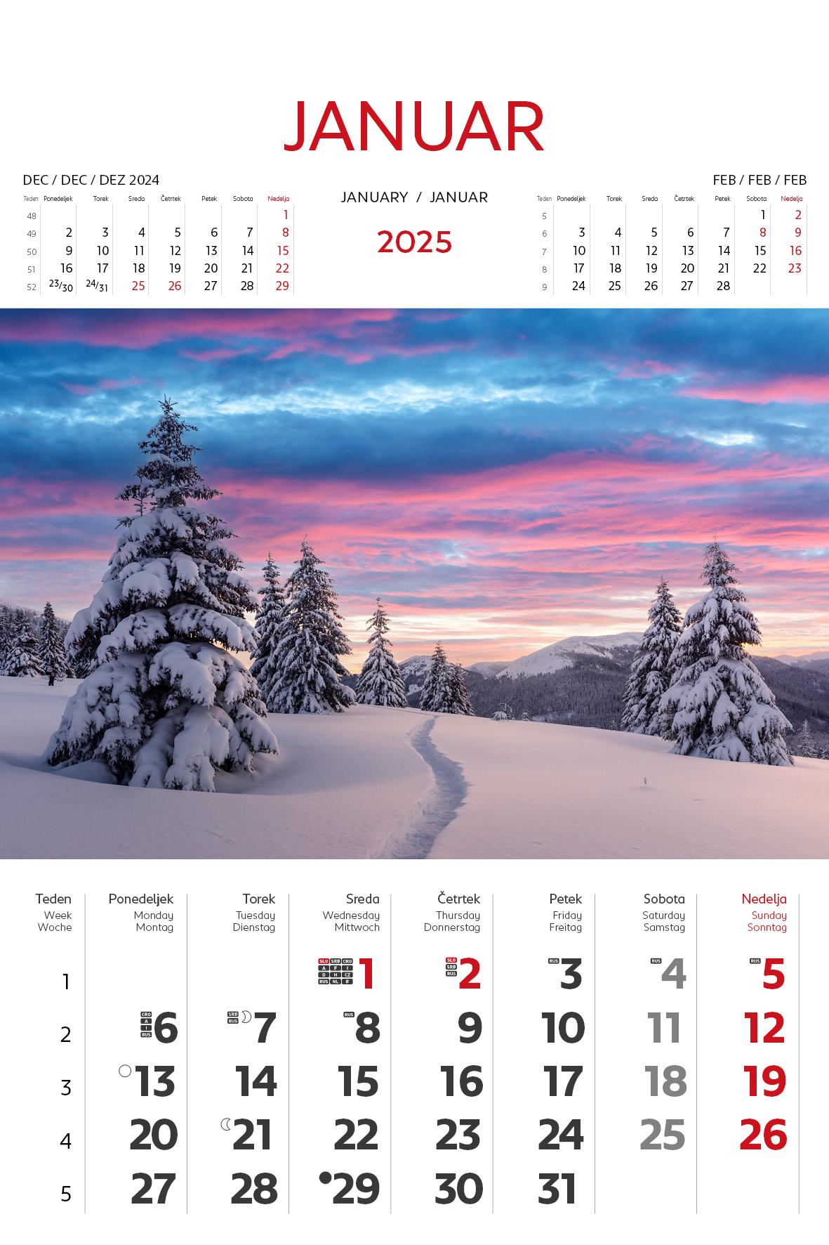 - označeni slov. in tuji prazniki, lune