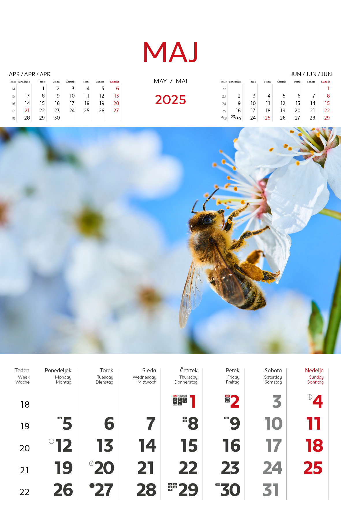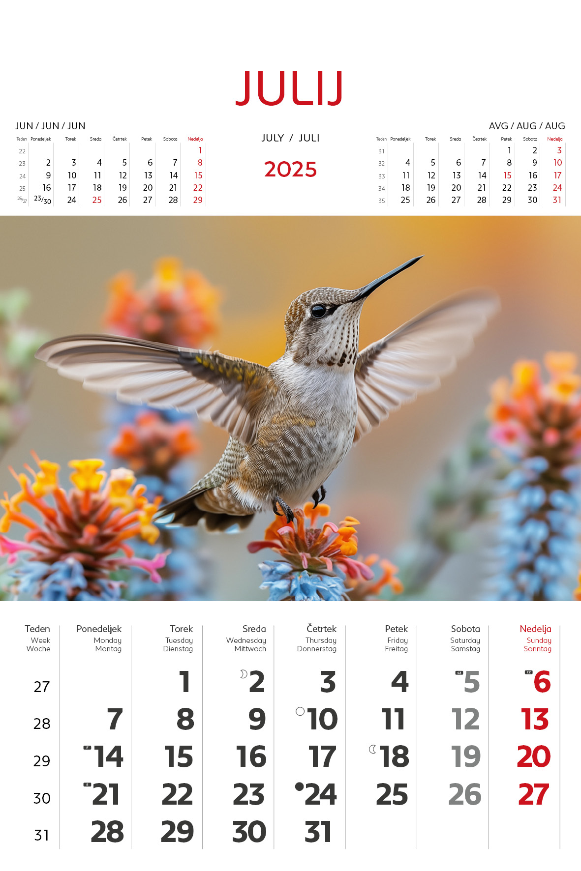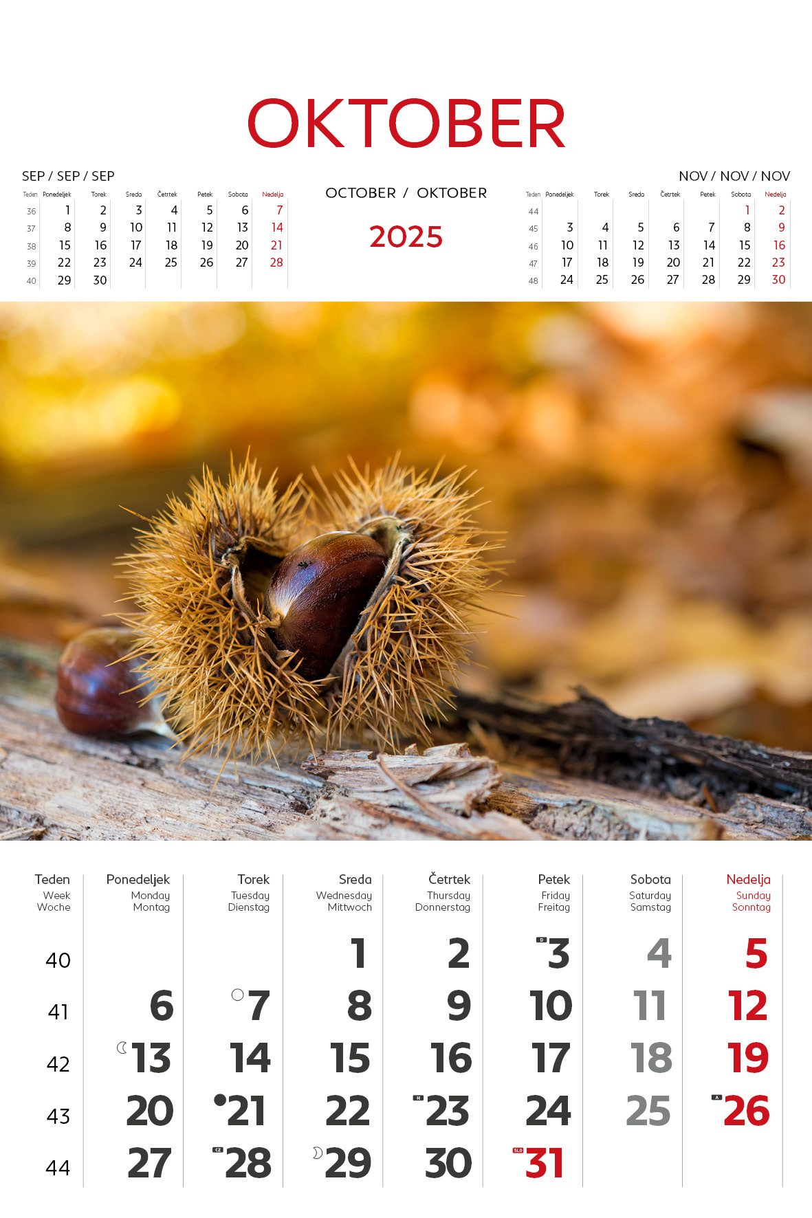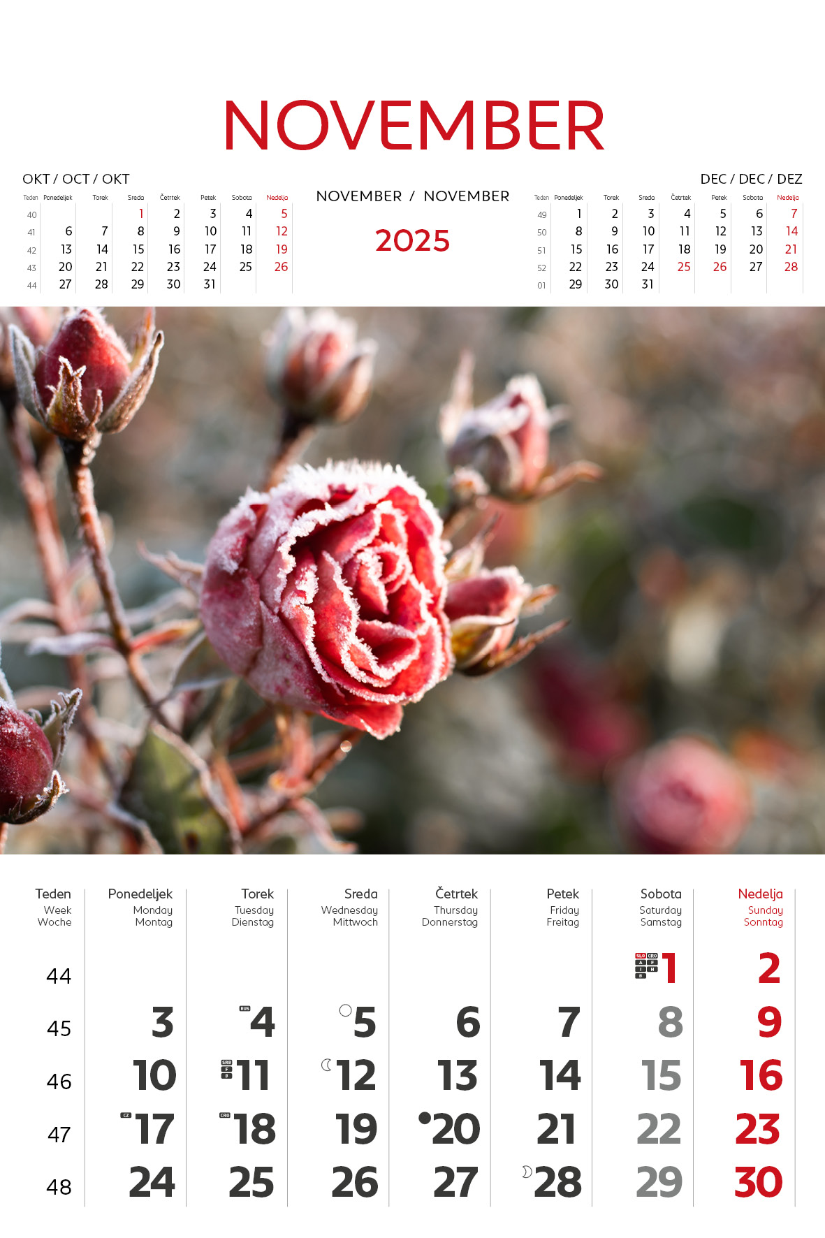 - označeni slov. in tuji prazniki, lune
