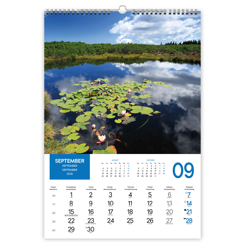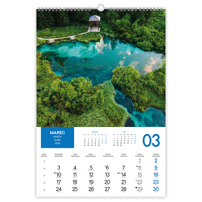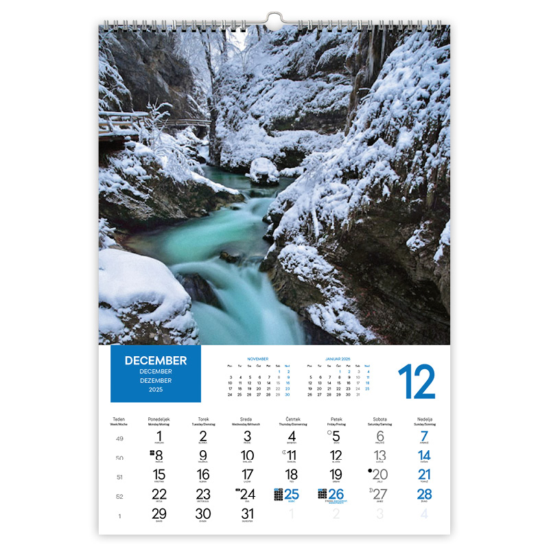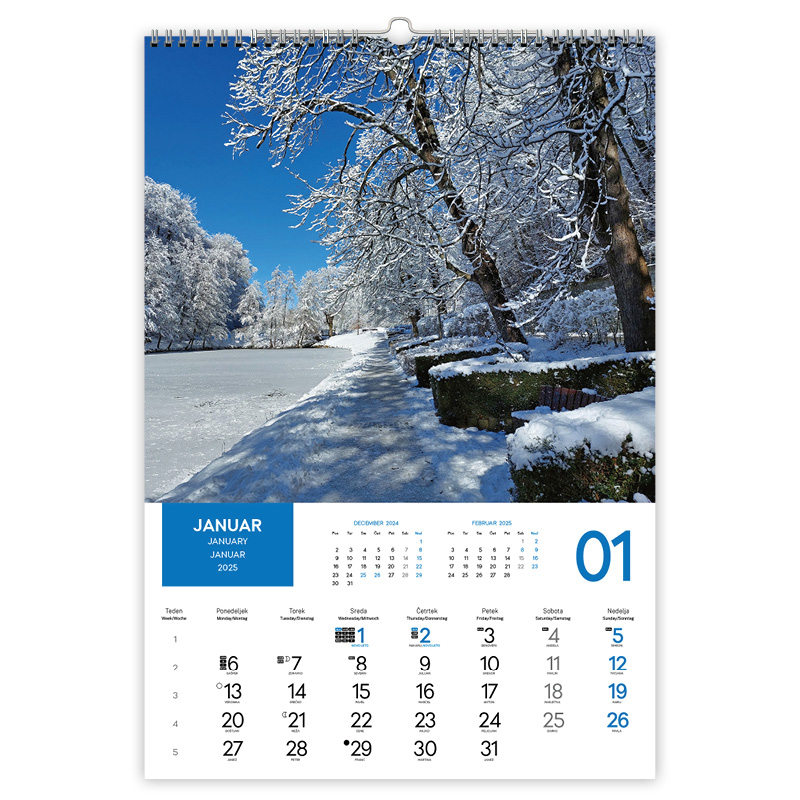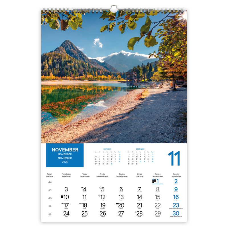 • označeni slov. prazniki, tedni, imena in lune